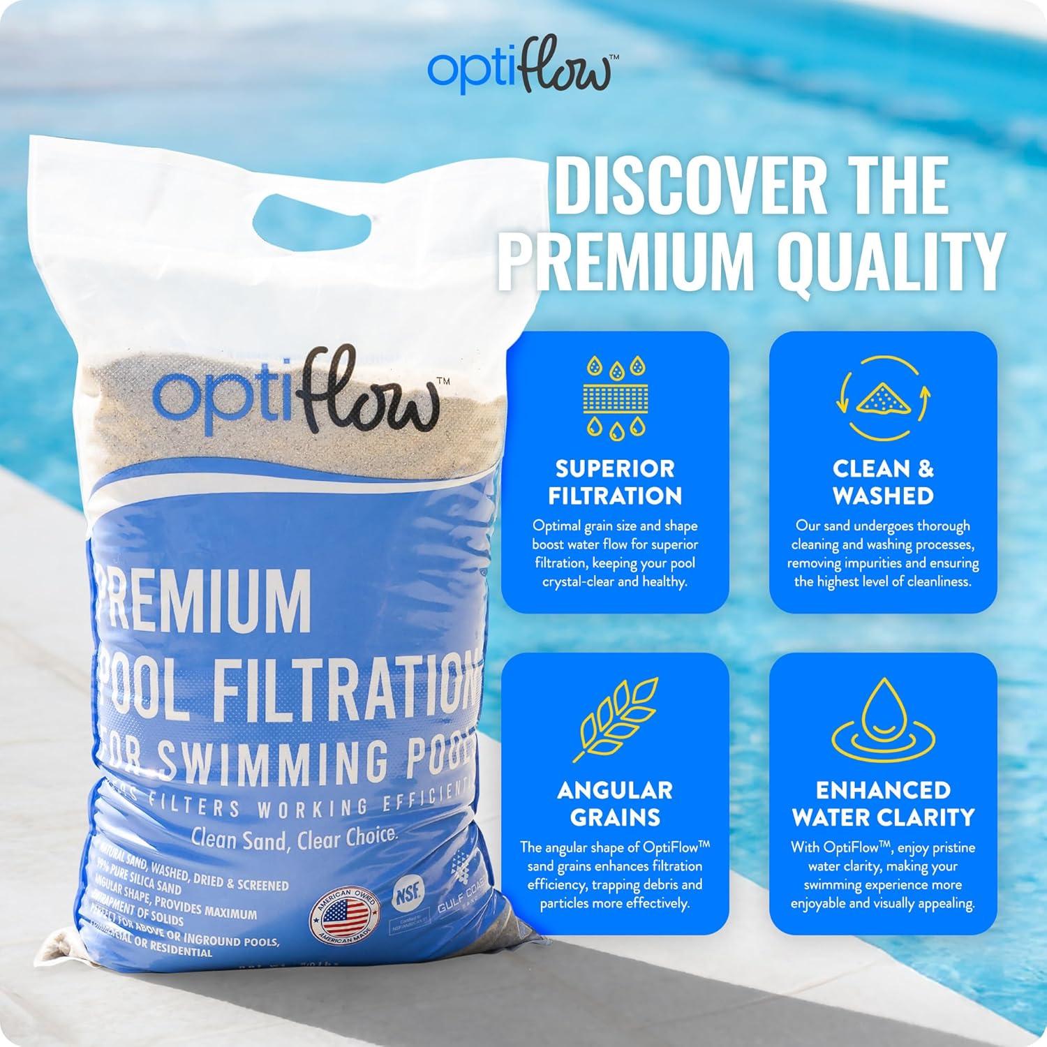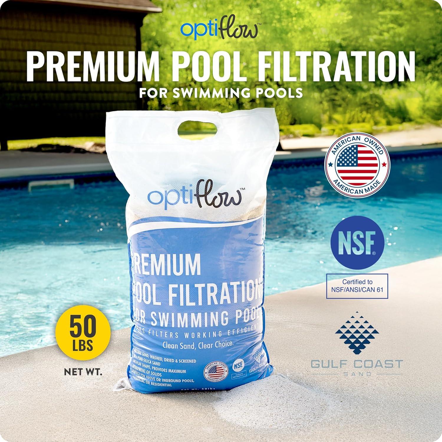 Above-Ground Pool Filter Set: Bundle includes Krystal Clear 3000 GPH Sand Filter Pump with (3) 50-pound bags of Premium Pool Filter Sand from OptiFlow that ensures exceptional water clarity by effectively capturing dirt, debris, and other impurities, keeping your pool pristine