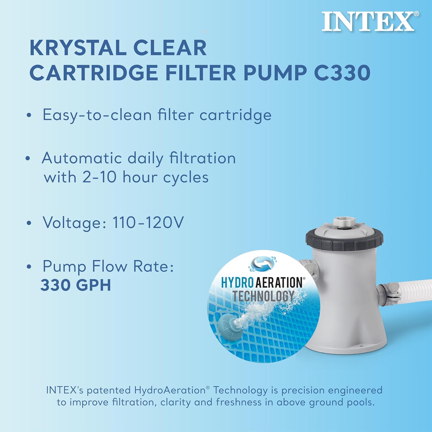 KRYSTAL CLEAR FILTRATION – The included pump filters 1000 GPH and incorporates HydroAeration Technology into the cartridge filter pump providing improved circulation and filtration, improved water clarity, and increased negative ions
